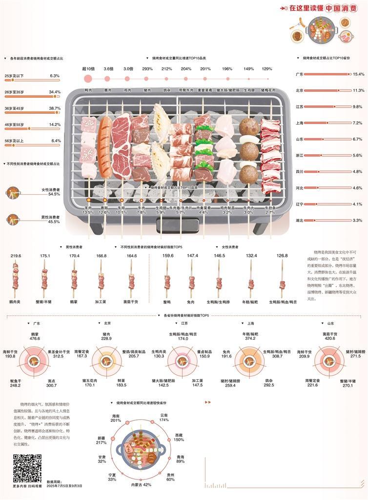 数据来源:JD消费者和工业发展研究所烧烤是一种古老的烹饪方法,至今仍然很有吸引力。无论是男人,女人,年轻人还是东方或西方,都受到青睐。虽然烧烤很简单,但它对组件的新鲜度有很高的要求,该组件的新鲜度测试了组件的特性和热控制。数据表明,牛肉和羊肉是消费者最受欢迎的烧烤成分。其中,羊肉的交易量最高,牛肉产品排在十大烧烤食材中。此外,尽管消费者对新的和新鲜口味的需求将继续增加,但一些利基烧烤成分却持久,销售迅速增长。数据表明鸭交易,鹿肉和内部器官的数量(鸽子杂项)增加了几次。我对烧烤的偏爱并不是北部,东方和西部分开的,但是在不同地区,烧烤组件的偏好各不相同。从各个地方的烧烤组件的偏好来看,南部地区的消费者更喜欢鸡肉成分。其中,广东消费者更喜欢鹅,尤其是鹅。江苏和上海消费者,例如鸭肠,鸭子,鸭语言和其他鸭子产品。北部地区的消费者通常更喜欢动物成分。例如,在消费者更喜欢北京和山东的烧烤的五种主要成分中,可以看到猪肉产品。炉子,火,招牌和串串,烧烤是一件美味的服装,而烟火的上升是鞭炮。如今,许多地方的特殊烧烤已成为该市的本地名片,烧烤已成为人们娱乐和享受的一种社交方式。烧烤行业还经历了从道路和小型商店水果到品牌和规模的变化。目前,我国有超过596,000个与烧烤相关的企业,许多领先的区域品牌都出现在不同的地方,而链化已成为发展烧烤行业的主要趋势。更出乎意料的是,在每个人眼中,烧烤拥有10,000多个相关应用程序,包括一项专利,包括大多数与烧烤设备有关的专利申请。可以看出,“小烧烤”中也有许多基本方法。 (文章资料来源:太阳 - 萨莱斯设定经济:Xin Ziqiang)